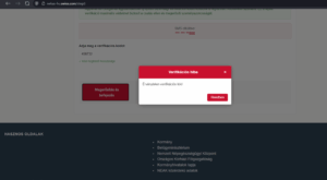 A folyamat utolsó lépésénél a felhasználó megadja a kapott kódot, de a weboldal “Érvénytelen verifikációs kód” hibaüzenetet ad. Ekkor már a tranzakció megtörtént, és a pénz elhagyta a számlánkat. A hibaüzenet célja az, hogy a felhasználó ne gyanakodjon azonnal, hanem azt higgye, technikai hiba történt, miközben a csalás már sikeres volt.