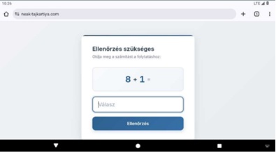 Az adathalász weboldal megnyitásakor a rendszer egy egyszerű matematikai feladatot tartalmazó CAPTCHA segítségével próbálja ellenőrizni, hogy valódi felhasználó látogatja-e az oldalt.
