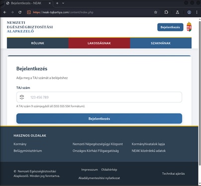 A Nemzetbiztonsági Szakszolgálat Nemzeti Kiberbiztonsági Intézet (NBSZ NKI) tájékoztatót ad ki a Nemzeti Egészségbiztosítási Alapkezelő (NEAK) nevével visszaélő, káros hivatkozást tartalmazó szöveges üzenetek (SMS) kapcsán. amelyekkel a támadók a TAJ kártya lejáratára hivatkozva próbálnak meg érzékeny adatokat kicsalni az áldozatoktól.