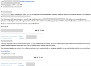 A támadás első lépéseként a támadó egy ismert vállalat toborzójának adja ki magát, majd hamis találkozómeghívót küld a célpontnak.